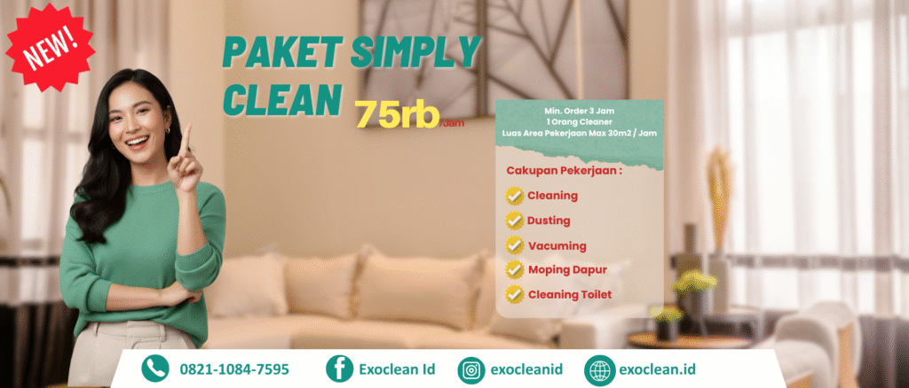 Jika kamu sibuk bekerja atau memiliki jadwal padat, Paket Simply Clean memberikan solusi terbaik. Kamu cukup memesan layanan, lalu biarkan tim kami bekerja secara profesional. Dalam waktu singkat, ruangan kembali bersih, rapi, dan siap digunakan.
